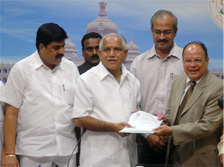 Left Mr. Reddy, Revenue Minister, Centre Chief Minister Yeddyurappa, Karnataka, next Chief Economic advisor to CM and right Govind Das Chairman GDHF...More Details
