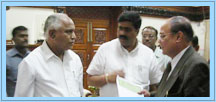 Left Mr. Reddy, Revenue Minister, Centre Chief Minister Yeddyurappa, Karnataka, next Chief Economic advisor to CM and right Govind Das Chairman GDHF...More Details