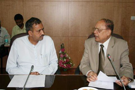 Mr Govindji, Chairrman, GPHF with Sri Visveswar Hegde, the Minister for Primary, Secondary Education.